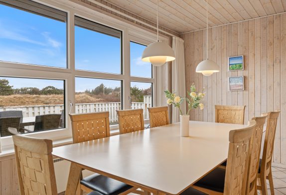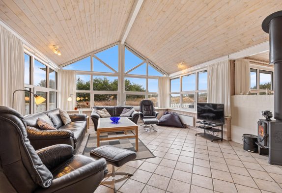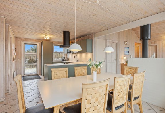 Huset tilbyder en stor dejlig og lys stue med klinkegulv og gulvvarme. I forbindelse med stuen ligger køkkenet og spisestuen, det hele holdt i lyse farver. Der er 4 gode soveværelser med trægulv. I huset finder I 4 soverum, hvoraf 3 er udstyret med dobbeltsenge og 2 enkeltsenge, hvilket sikrer, at alle sover behageligt. Efter en dag fyldt med oplevelser i det smukke Søndervig, kan I glæde jer til at komme hjem til en afslappende stund i husets sauna eller tømmespa. De to badeværelser er også udstyret med gulvvarme, hvilket gør det ekstra behageligt at træde ud af badet.