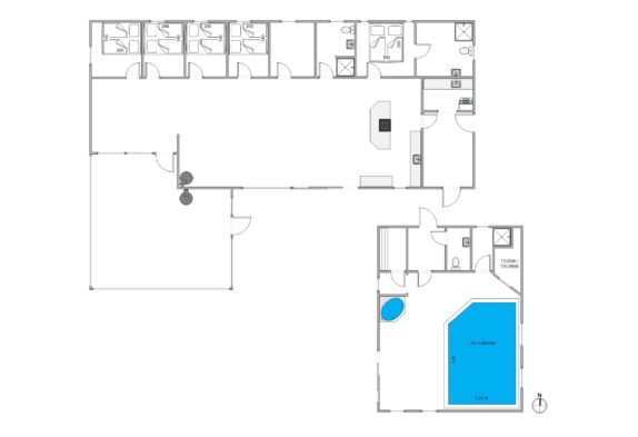 Dette dejlige sommerhus har en skøn separat tilbygning med en 24 m² stor pool og et skønt wellnesshjørne med både spabad og sauna. Her kan børn og voksne boltre sig fra morgen til aften uden at det forstyrrer hele huset. Der er tilmed også et lille møblement i hjørnet, der tillader at voksne kan sidde her og holde øje med de mindste, mens de nyder den dejlige pool og alt det sjov som den med giver.