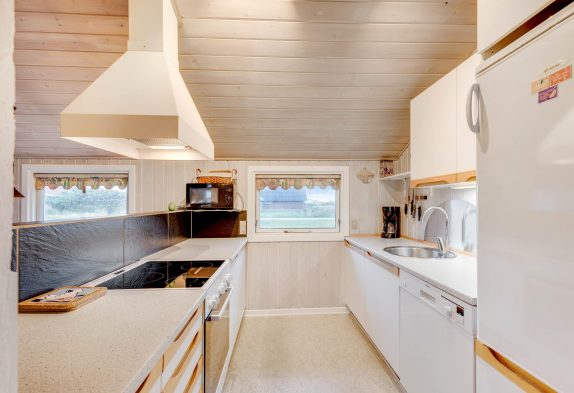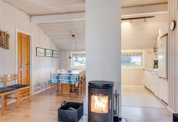 Dette sommerhus i Søndervig byder jer velkommen med en række moderne faciliteter. I det veludstyrede køkken finder I en opvaskemaskine, hvilket gør det nemt at klare opvasken efter hyggelige fællesmåltider. Opholdsområdet er udstyret med en brændeovn, der skaber en hyggelig atmosfære på de kølige aftener. En luft til luft varmepumpe sikrer, at temperaturen indendørs altid er behagelig, uanset årstid.