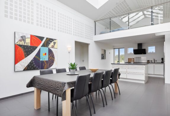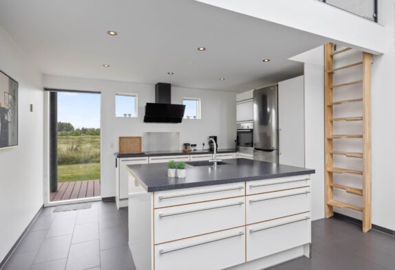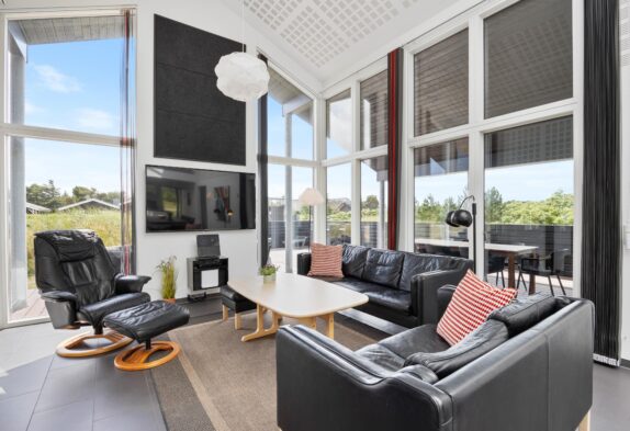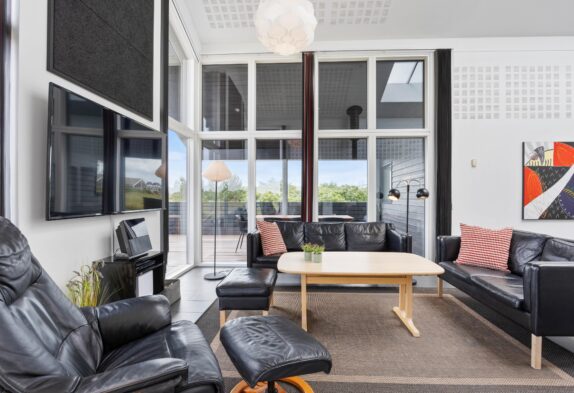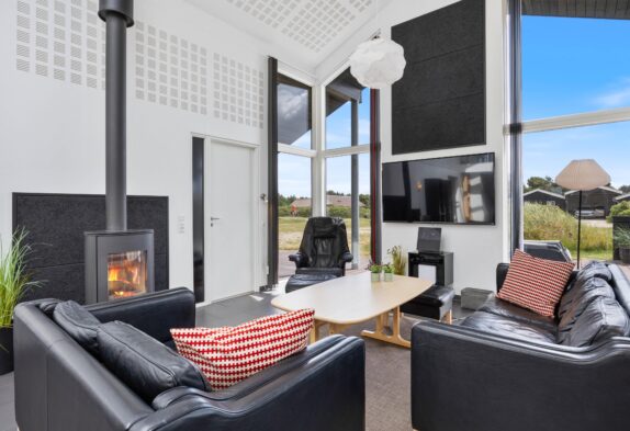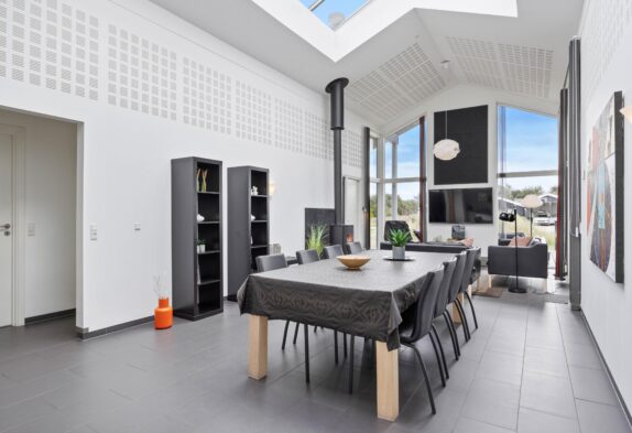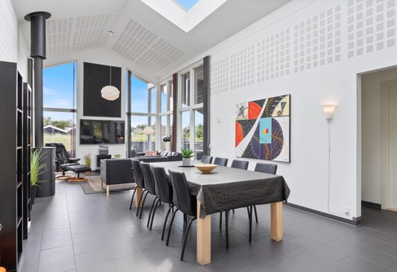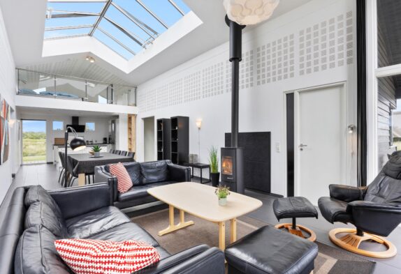 Læn dig tilbage og nyd kvalitetstiden med familien; rammerne er sat for en god ferie. I dette sommerhus er der kræset for kvaliteten i alle detaljer. Og fra du træder ind af døren, mærker du, at feriehuset emmer af velvære og kvalitet. Sommerhusets hjerte med stue og køkken/alrum, hvor der er plads og luft til den store familie, er perfekt til hyggelige timer sammen. Det store ovenlys og de høje lofter skaber en helt særlig atmosfære.