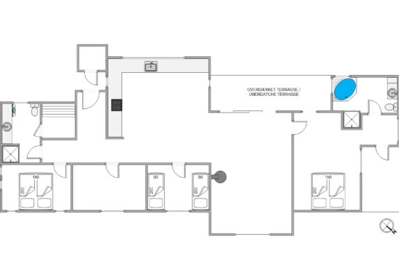 Et virkelig spændende hus med flotte detaljer og hyggelig indretning. Fordelt på 120 kvadratmeter, finder I tre dejlige og lyse værelser, hvoraf to er med dobbeltsenge og et enkelt værelse med to enkeltsenge. I hver ende af huset finder I et badeværelse. Begge er naturligvis med bruser og gulvvarme, hvor det ene er med et indendørs spabad og det andet er med sauna.