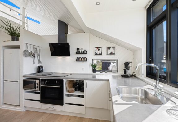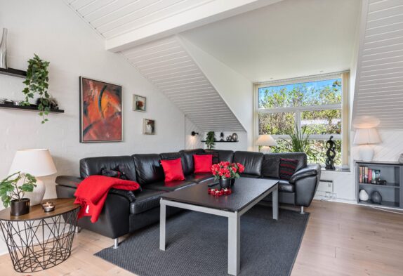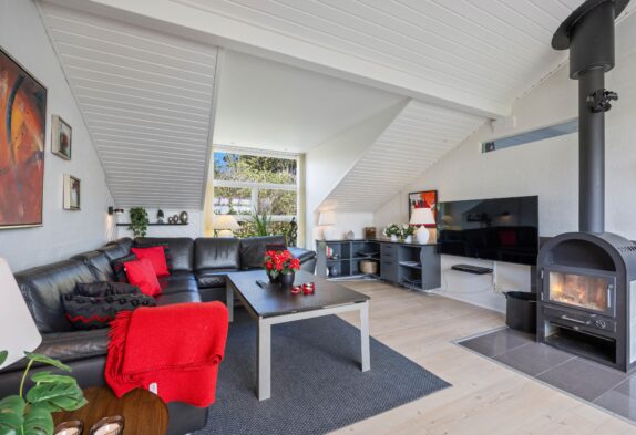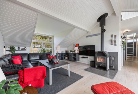 Fordi at vinduerne sørger for et godt lysindfald, samt alle lofter og vægge er hvide, er her derfor meget lyst og rart. Huset tilbyder også en hyggelig hems, hvor I kan hygge med en god bog eller bare nyde det fantastiske lysindfald som ovenlysvinduet giver