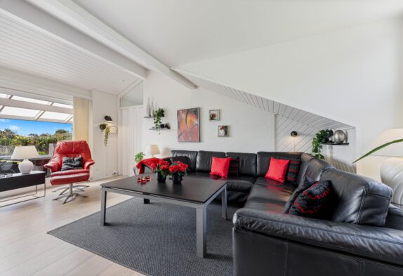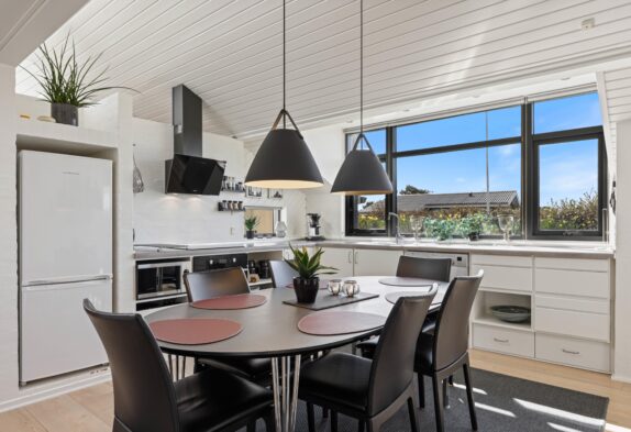 Hvis I er på udkig efter et hyggetligt feriehus med lidt kant, så behøver I ikke at lede længere. Det spændende arkitekttegnet feriehus som ligger på Hvidbjergvej 40, hvor der virkelig er kræset for alle detaljer. Feriehuset er smagfuldt indrettet og overalt er der et dejligt lysindfald, og med mulighed for at samles op til seks personer og en enkelt hund, er huset perfekt til en familie eller en vennegruppe. Der er flere dejlige terrasser rundt om huset, så I kan altid findee en lækrog.