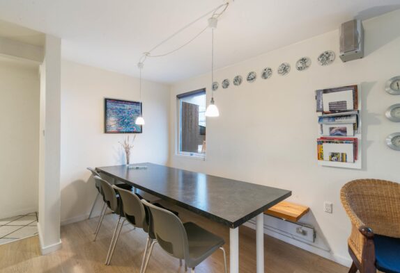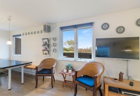 Krattet 2 byder jer velkommen til en opholdsstue hvor stue og køkken er i direkte åben forbindelse. Der er rigelig plads ved den dejlige spiseplads, hvor hele familien kan samles og nyde lækker mad og godt selskab. Måske nogen vil sidde med et godt glas vin, samtidig med andre laver mad i køkkenet. Stuen er hyggeligt indrettet og lægger i den grad op til hygge, fordybelse eller en god film.