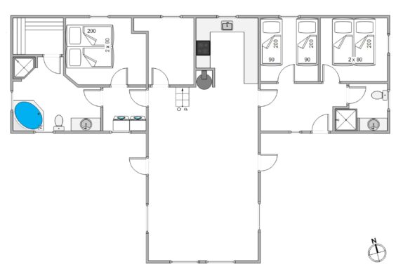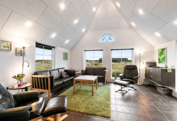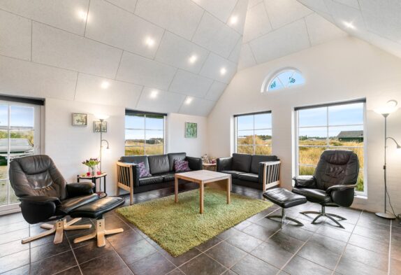 I et moderne feriehus forventer man to badeværelser med gulvvarme, så der kan bo to familier eller en stor familie i huset. Og det er i dette feriehus naturligt også tilfældet. Derudover er der er 3 soveværelser, et ekstra værelse med en sofa og et fladskærms-TV, hvor man kan tilslutte sin medbragte spilkonsol. Efter en travetur langs Vesterhavet er det altid skønt at komme tilbage til huset, tænde op i brændeovnen og nyde varmen og de fredfyldte flammer.