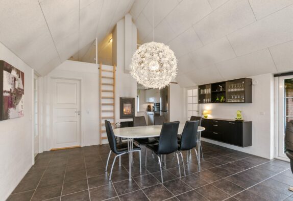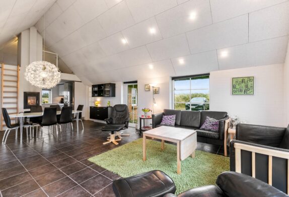 Det store opholdsrum giver jer virkelig mulighed for at slappe af og bare nyde hinandens selskab. Her er dejlige møbler hvor I kan slappe af og se noget tv, eller I kan hygge jer med nogle af jeres medbragte brætspil. Uanset hvad I beslutter jer for, så kan I hygge jer her i huset. Huset brændeovn bidrager i høj grad også til den hyggelige stemning, så hvis I ønsker ægte dansk feriehygge, er det især oplagt at tænde op for den.