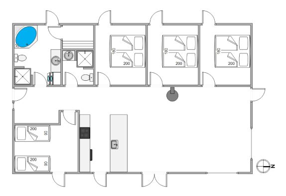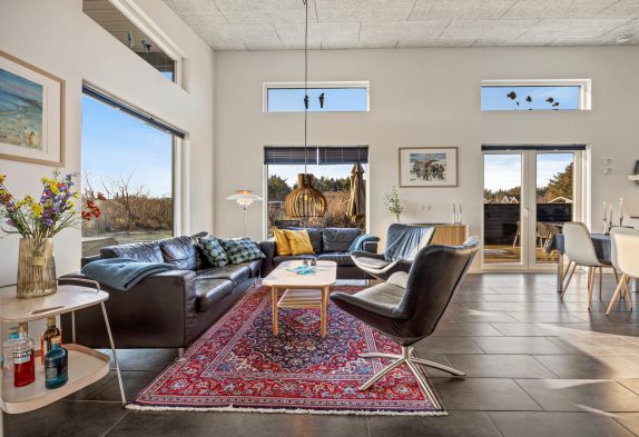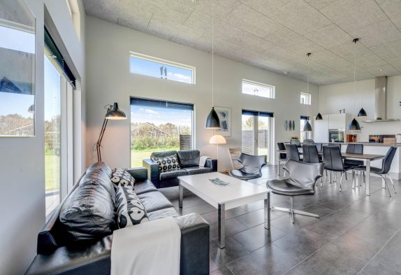 Et fantastisk dejligt feriehus opført i de bedste materialer. For jeres velbehag og komfort er smagfuldt og moderne indrettet. Dette går igen i alle rum, og i huset finder I fire rigtig dejlige og lyse soveværelser, alle med dobbeltsenge og gode skabsforhold. To dejlige badeværelser med gulvvarme og bruser, sikrer at der ikke er kø til toilettet og bruseren om morgenen. I det største af badeværelse kan I endda forkæle jer selv med noget hjemmewellness i form af en sauna og et spabad.