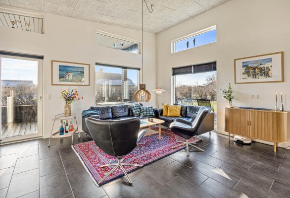 Her på Harbo Stages Vej 7 finder I et fantastisk dejligt feriehus opført i de bedste materialer. Indvendigt er der smagfuldt og moderne indrettet feriehus til otte personer, beliggende i gåafstand fra Søndervig centrum. Feriehuset er beliggende på en plænegrund og har en skøn, afskærmet og delvist overdækket terrasse.