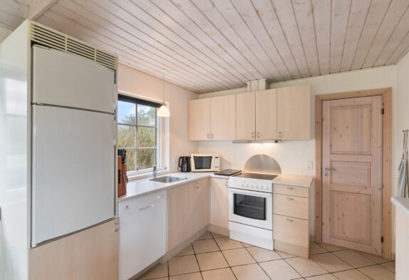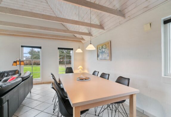 I gåafstand fra Søndervig centrum finder du dette dejlige feriehus. Huset er lyst og venligt indrettet og fra stuen og et soveværelse er der udgang til den fine terrasse, hvor der også er indrettet sandkasse og gynge til børnene.