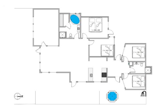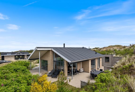 Fantastisk lækkert feriehus, smagfuldt indrettet og med masser af plads til den store familie. Huset har 2 badeværelser, det ene med spabad og adgang til sauna. Det flotte aktivitetsrum indbyder til mange sjove og hyggelige timer sammen. Ude på terrassen finder I en udebruser, som er oplagt at benytte, efter en tur på stranden, for at skylle sandet af kroppen.