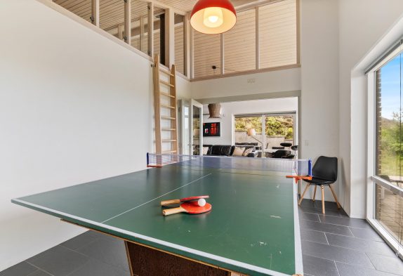 Her på Mågedalen 41 finder I et fantastisk flot feriehus med en god og meget smagfuld indretning. Feriehuset har plads til den store familie på 8 og med det flotte aktivitetsrum med bl.a. poolbord og plade til, så man kan spille bordtennis, er der mange muligheder for sjov og hygge, hvis vejret skulle vise sig fra sin dårlige side af. De 4 dejlige værelser som feriehuset råder over, er alle med komfortable dobbeltsenge der sikrer en god nats søvn.