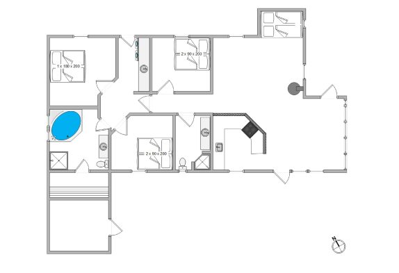 Feriehuset har 3 værelser, der alle er med dobbeltseng. På det ene af de 2 badeværelser er der desuden både spabad og sauna, hvor I rigtig kan forkæle både krop og sjæl efter en lang dag i den friske vestenvind. Sommerhuset er udstyret med en energivenlig luft-til-luft varmepumpe, der kan være med til at sørge for et godt indeklima hele året rundt.