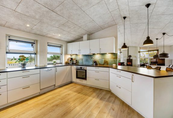 Drømmer I om en ferie ved Vesterhavet lidt ud over det sædvanlige? Så er dette arkitekttegnede sommerhus i Houvig et godt bud på jeres næste feriebolig. Feriehuset er beliggende på en pragtfuld kuperet naturgrund og med herlig udsigt fra såvel hus som grund. I 2020 har feriehuset gennemgået en renovering, og den moderne indretning rummer blandt andet spabad, sauna og aktivitetsrum.