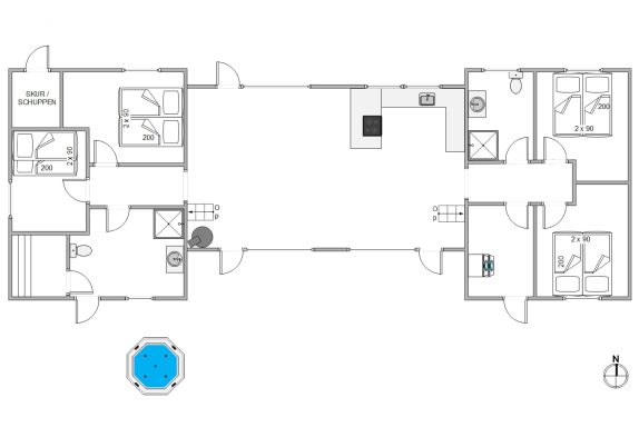 I dette flotte sommerhus er der tydeligvis kræset for indretningen med lækre møbler og flot design, så I lige fra start føler jer hjemme og får lyst til at tilbringe ferien med familien hér. Sommerhuset har en rigtig god indretning med soverum, et dejligt badeværelse og en hems til børnene i hver ende, hvilket gør huset helt perfekt til den store familie eller endda flere familier, som ønsker at holde ferie sammen. Desuden har sommerhuset to badeværelser – begge med gulvvarme – så hver familie kan få deres eget.
