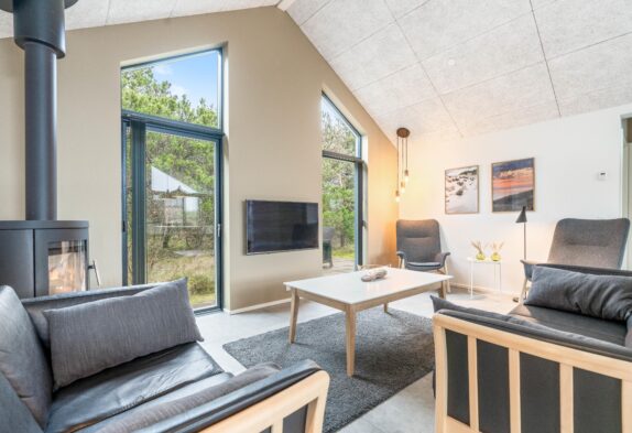 Det flotte sommerhus er med sine 120 m2 velindrettet og rummeligt. Indretningsstilen er moderne og smagfuld med masser af lys, og der er lagt stor vægt på, at I skal føle jer godt tilpas fra første ferieøjeblik.