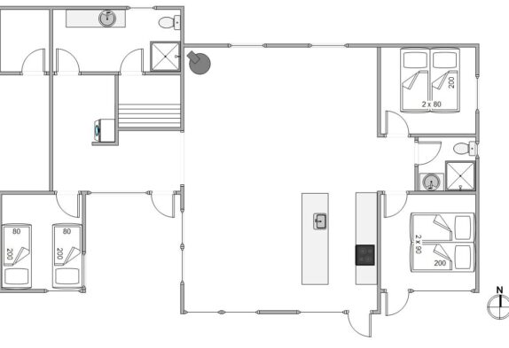 De praktiske faciliteter er også helt i top. Sommerhuset har 2 badeværelser, så I undgår de lange toiletkøer, og alle hverdagens hjælpere (opvaskemaskine, vaskemaskine og tørretumbler) er ligeledes på plads. En hurtig og stabil internetforbindelse sørger for, at I kan streame film og serier i massevis på den medbragte elektronik.