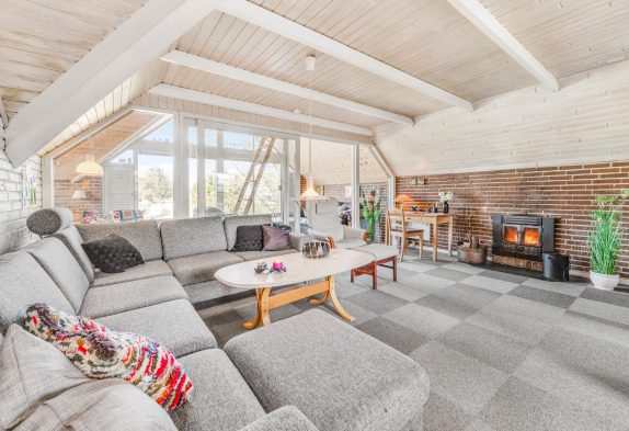 Charmerende feriehus på Hjelmevej 7 med brændeovn og opvaskemaskine