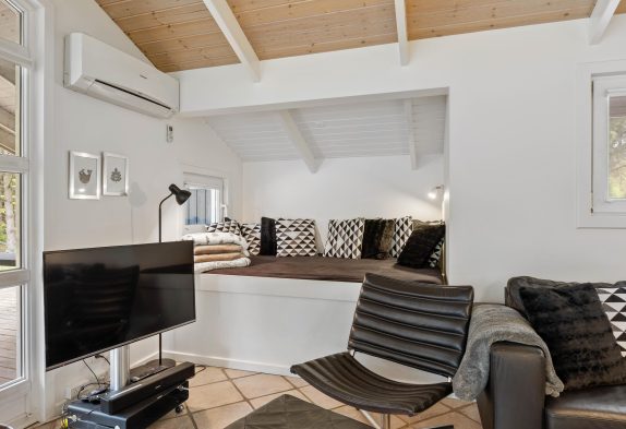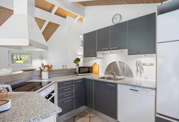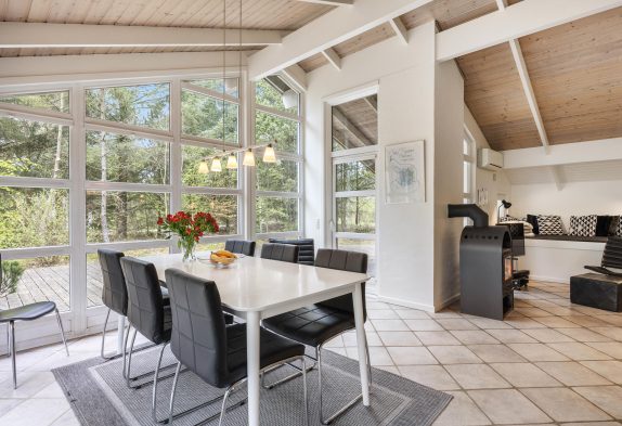 Meget velholdt og veludstyret feriehus, hvor der er kræset for detaljerne i den smagfulde indretning. Og med beliggenheden på en rolig naturgrund omkranset af træer, er det muligt uforstyrret at nyde ferien på den store, delvist overdækkede terrasse, hvor der altid kan findes en lækrog.