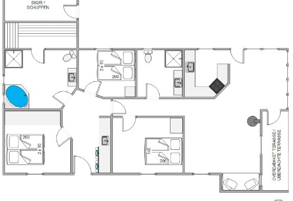 Der er tre hyggelige soveværelser med dobbeltsenge. Og da der er to badeværelser, er huset velegnet til større eller flere familier. På det ene badeværelse findes der endda et spabad og en sauna – lige til et par timers selvforkælelse efter en lang gåtur eller en skøn dag på stranden.