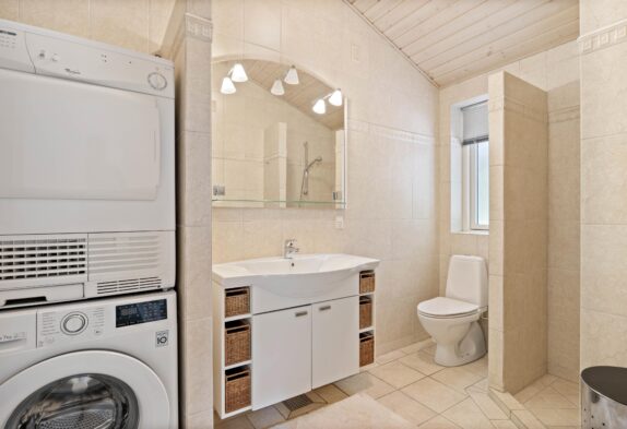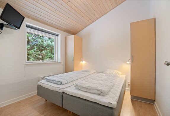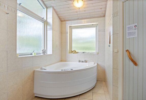 Sommerhuset er meget velholdt og fremstår lys og indbydende overalt. Det Her er 3 rigtig gode soveværelser med plads til i alt 6 personer. For at gøre feriekokken glad, råder huset over et stort og veludstyret køkken, som ligger i åben forbindelse med spisestue og stuen. Stuen er indrettet i lyse farver og har højt til loftet. Her er trægulve, brændeovn, fladskærm og gratis internetforbindelse, hvilket giver jer rigeligt med muligheder for at slappe af eller hygge jer med jeres medrejsende. Efter en lang dag, kan I hoppe i husets boblebad eller slappe af i saunaen. Sommerhuset har 2 badeværelser der begge er med gulvvarme, hvilket er ekstra bekvemt hvis I kommer til huset flere personer.