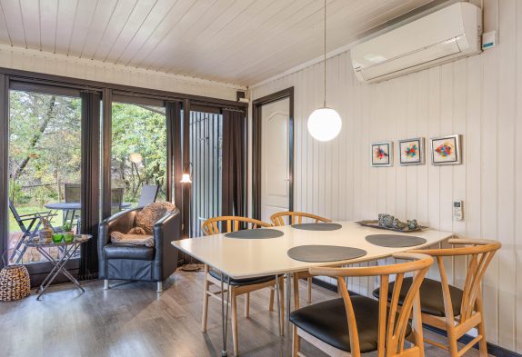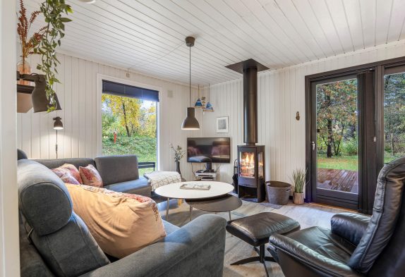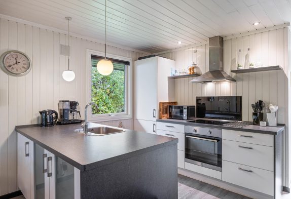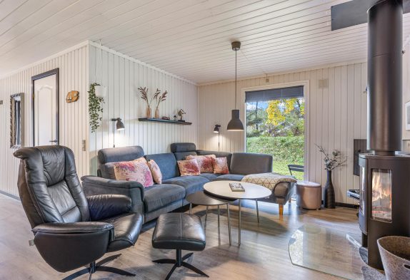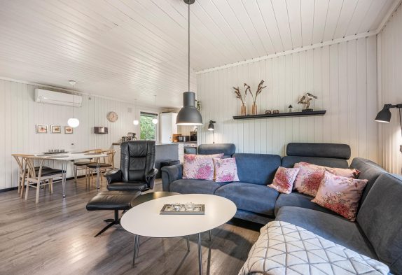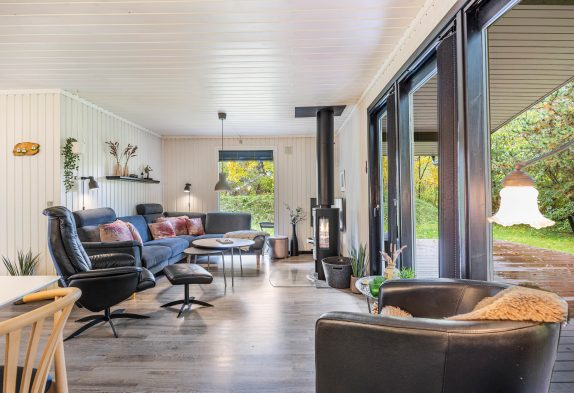 Sommerhusets stue er charmerende indrettet med brændeovn, så I kan nyde ildens dansen og den gode varme efter en frisk gåtur ved Vesterhavet. Brændeovnen skaber en hyggelig og afslappende atmosfære, som indbyder til rolige aftener med brætspil eller en god bog. Der er desuden en energibesparende luft-til-luft varmepumpe, som I med fordel kan benytte jer af, for at holde temperaturen behagelig året rundt. Køkkenet er veludstyret med moderne bekvemmeligheder som opvaskemaskine og en separat fryser på 80L.