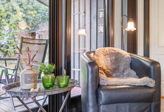 Sommerhuset byder på gode terrasser – mod vest en delvist overdækket terrasse og mod syd en dejlig, åben og stor terrasse, som er velegnet til brug i løbet af dagen. Her kan I solbade, grille eller bare slappe af med en bog i den friske luft.