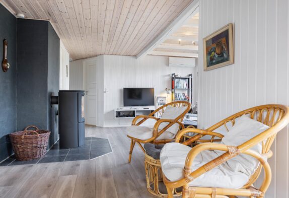 Et pænt og velholdt sommerhus beliggende på en rolig og uforstyrret naturgrund. Indenfor kan I samles til spilleaftener eller tage en slapper på sofaen foran brændeovnen – mod øst og syd har feriehuset en rigtig fin lukket terrasse, hvor solskinstimerne kan nydes. Herfra har I heller ikke langt til Vesterhavets brede sandstrande.