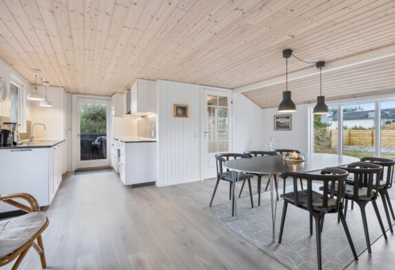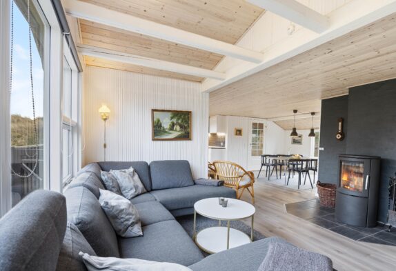 Hjerterummet er det store samlingsrum, der forener stue og køkken. I lyse og venlige omgivelser kan hele flokken samles til mange gode feriestunder. Find potter og pander frem og tilbered en lækker brunch – perfekt når I har kunne sove lidt længere end normalt! Over maden kan I sammen planlægge dagens aktiviteter og udflugter. Efter en dejlig dag på farten kan I slappe af foran fladskærmen eller sætte jer godt til rette foran den knitrende brændeovn med en god bog.