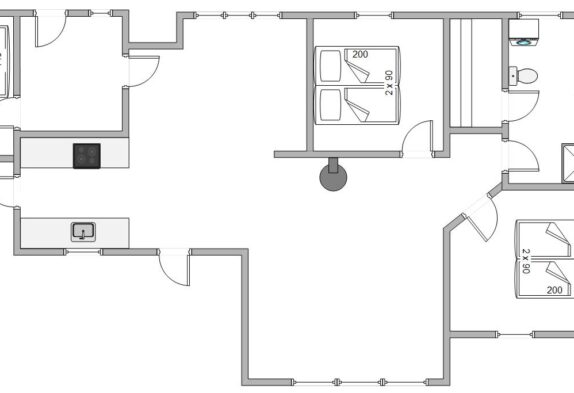 I dette hyggelige sommerhus er der plads til 6 feriegæster, som kan fordele sig rundt på de 3 fine soveværelser. Sommerhuset har et fint badeværelse med bruser og gulvvarme, så I ikke behøver fryse fødderne om morgenen. Også her finder I vaskemaskine og tørretumbler, så I har mulighed for at komme vasketøjet i forkøbet eller friske strandhåndklæderne op undervejs.