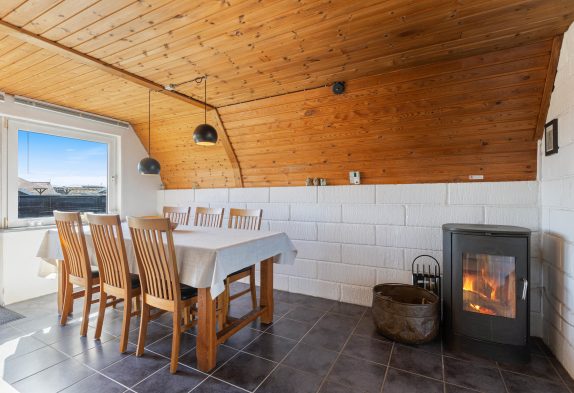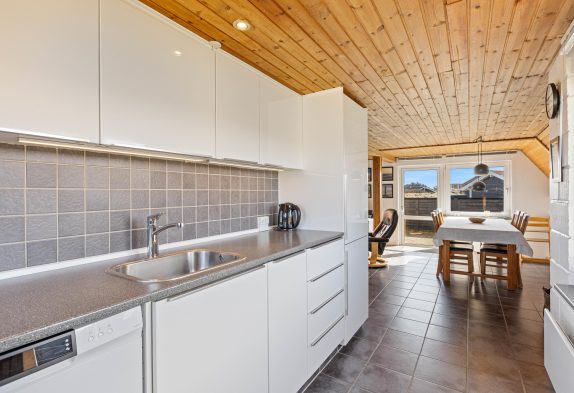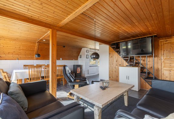 Dette sommerhus i Årgab ligger blot 150 meter fra det brusende hav, hvor I kan gå lange gåture på stranden med hundene. Samtidig er der kun 2000 meter til nærmeste indkøbsmuligheder, så det er nemt at handle ind til hyggelige grillaftener på den afskærmede terrasse. Med grill og havemøbler til rådighed kan I nemt glæde jer over fælles udendørs måltider og hyggelige sommeraftener i rolige omgivelser.