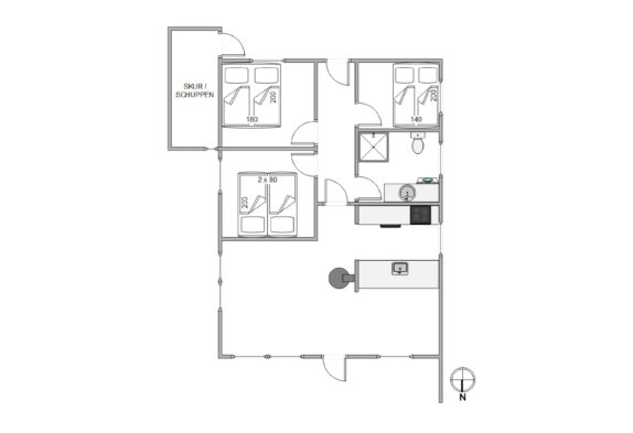 Sommerhuset kan huse op til seks glade feriegæster, og strækker sig i alt over 84 kvadratmeter. Sommerhusest seks sovepladser er fordelt på tre soverum, som alle er med en dobbeltseng. I er derfor mulighed for at nyde en god nat søvn efter en lang og begivenhedsrig dag.