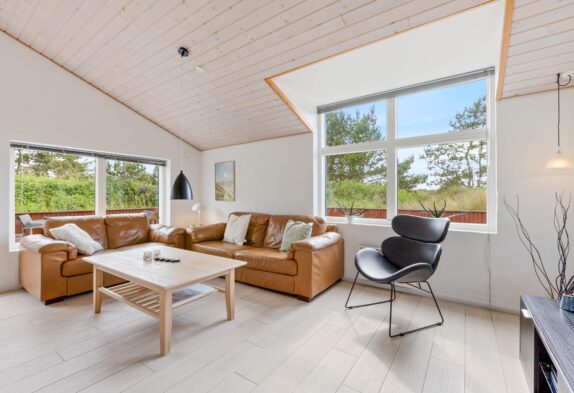 Sommerhuset er rigtig godt egnet til familier med børn, og familiens hund er selvfølgelig også velkommen. Sommerhusets gode størrelse, de moderne faciliteter og brændeovnen indbyder til ren hygge og afslapning med familien – især efter en dejlig gåtur til Vesterhavet. På husets naturgrund mod øst kan børnene hygge sig på gyngestativet og lege i sandkassen.