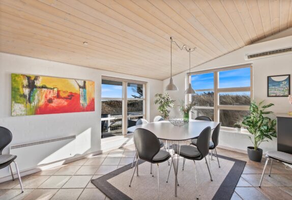 Flot kvalitetshus, der med sin unikke placering ved klitterne og flotte indretning sikrer en skøn ferie. Huset er opført i gode materialer, blev renoveret i 2013 og er udstyret med talrige faciliteter. Deriblandt et 16 amp stik til opladning af el biler. Og på terrasserne omkring huset kan hele familien nyde tiden sammen i den friske havluft.