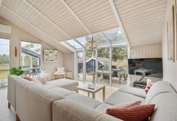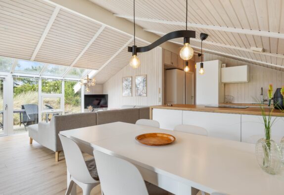 Fra stuen kan I træde ud på den fine overdækkede terrasse, som er så velafskærmet, at man her kan nyde den friske luft fra tidligt på foråret og langt hen på efteråret. Rundt om feriehuset er der flere gode lækroge, så I har mulighed for at sidde godt og i ly alt efter vejr og vind. Sæt jer godt til rette og nyd det lækre måltid, der evt. er tilberedt på grillen – dét hører ferien til! Afslut dagen med en gåtur med familien på stranden.