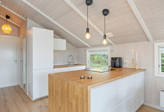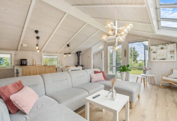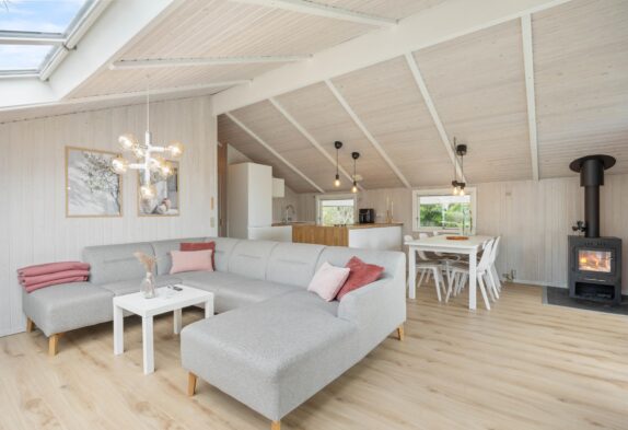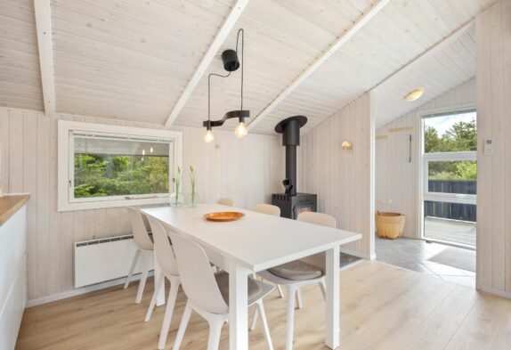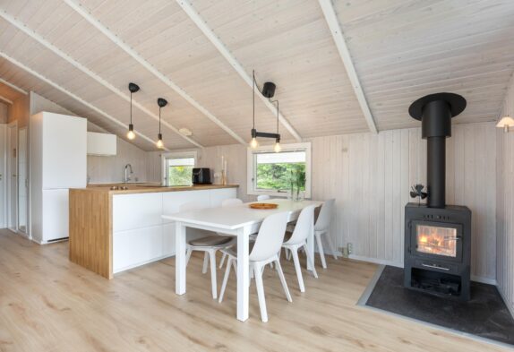 Samlingspunktet er alrummet, hvor stue, spiseområde samt køkken forenes. Her er dejlig lyst, og de store vinduespartier lukker lyset og naturen indenfor. På en af de køligere dage, kan I med fordel tænde op i brændeovnen og lade hyggen sprede sig. Her kan hele familien samles til mange hyggelige stunder, om I vil holde filmaften i sofaen eller brætspilsaften omkring spisebordet. Lad duften fra køkkenet sprede sig i rummet og gør klar til en dejlig aften omkring bordet inde eller ude.
