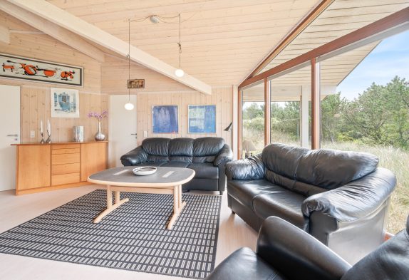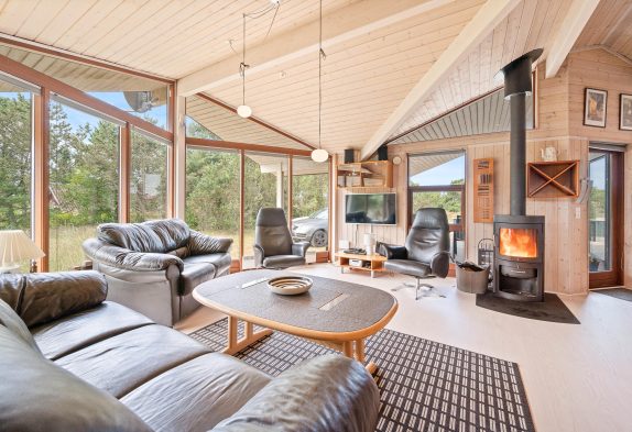 Mod vest ligger klitterne og den lange flotte sandstrand, som byder på smukke oplevelser og lange spadsereture. Efter en lang travetur kan du slappe af i sommerhuset, på sofaen foran brændeovnen, eller hvad med at slutte dagen af med en tur i boblebadet?