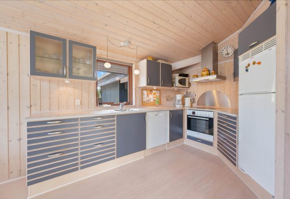 Her er en virkelig hyggelig stue med gode møbler og som er rigtig hyggeligt indrettet. Stuen står i åben forbindelse med det rummelige køkken, som blandt andet er udstyret med opvaskemaskine og mikroovn. Fra opholdsrummet er der udgang til den overdækkede terrasse, som er udstyret med havemøbler, liggestole og grill.