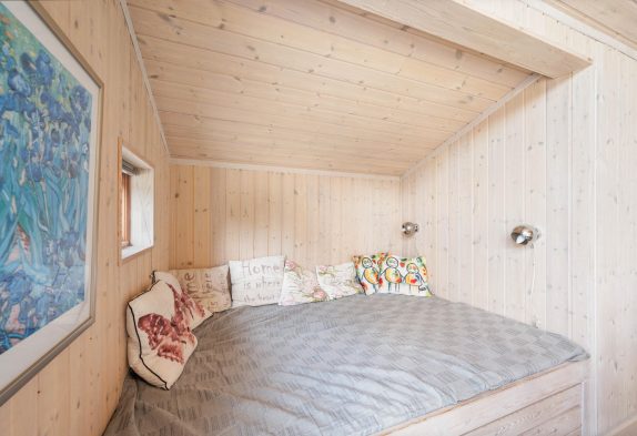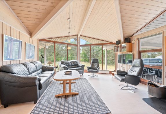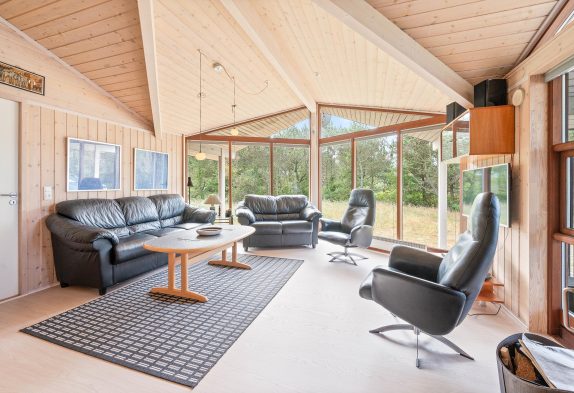 I dette dejlige sommerhus er der plads til i alt 8 personer. Her er 3 gode soveværelser med boksmadrasser og en hyggelig lille alkove med plads til 2 børn. Sommerhuset har desuden to fine badeværelser med gulvvarme og brus, – i det ene får du også et luksuriøst boblebad og sauna med plads til 2-3 personer.
