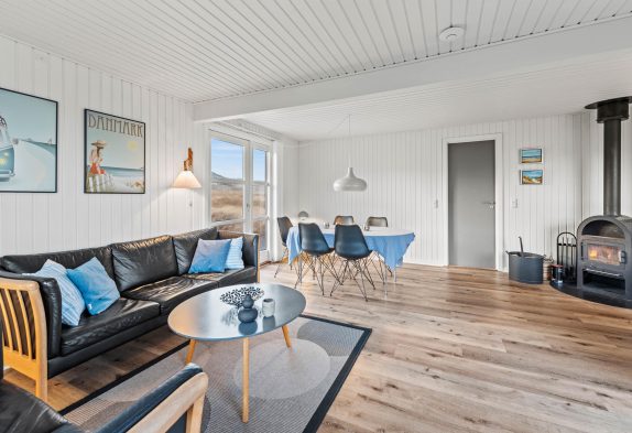 Udover de mange gode faciliteter, så byder sommerhuset på masser af hygge og afslapning. Her er dejlig lyst og flere forskellige hyggekroge, hvor I kan slå jer ned og læse en god bog, mens I bliver betaget af den gode udsigt ud til det klitbeklædte landskab.
