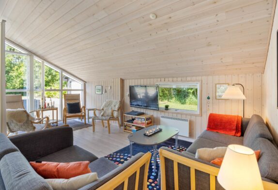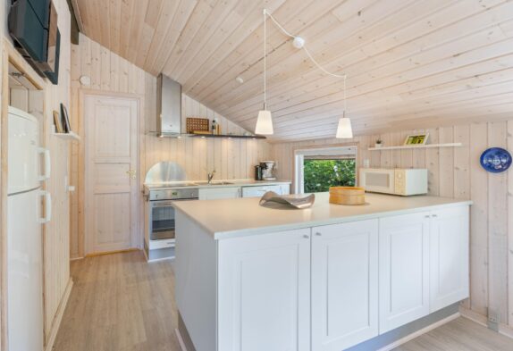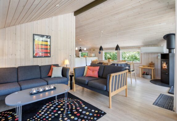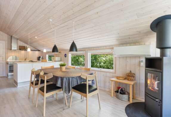 Efter en dag fyldt med oplevelser ved Vesterhavet kan I slappe af i det åbne og hyggelige opholdsrum. Tænd op i brændeovnen og nyd den varme, knitrende stemning, mens I samles til en god film eller et spil kort – den klassiske sommerhusstemning er garanteret.