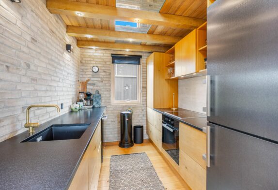 Flotte detaljer sætter hele vejen rundt bidrager til den stilfulde indretning, og brændeovnen tilfører ekstra hygge og charme, så feriestemningen er i top hele året rundt.