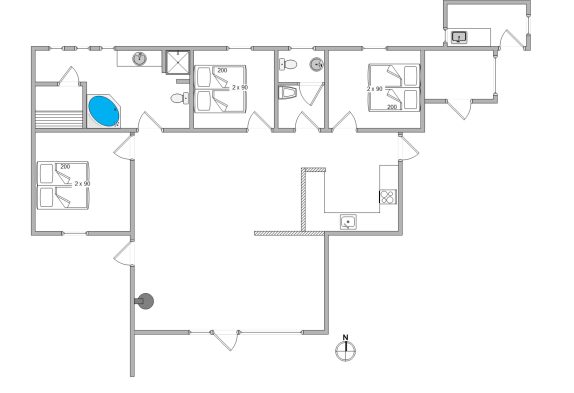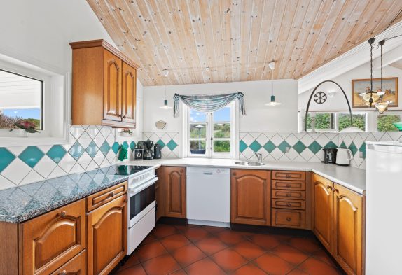 Hyggeligt feriehus med personlig indretning og stil. Der er flere gode terrasser, og har I en lystfisker med, er der en praktisk fiskerenseplads i udhuset, hvor de friskfangede fisk kan renses, inden de tilberedes på grillen.