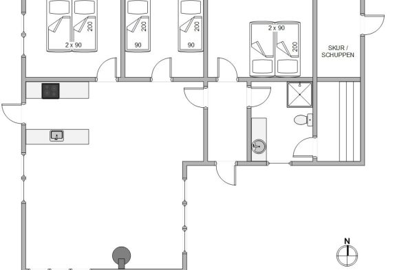 Det åbne køkken i forbindelse med opholdsrummet indeholder alt, hvad I behøver for at forkæle hinanden med lækre hjemmelavede måltider. Især lystfiskere vil sætte pris på den separate fryser på 100 l. I de 3 rummelige soveværelser er der 2 dobbeltsenge og 2 enkeltsenge, hvor I kan hvile godt ud i den friske vesterhavsluft. I forbindelse med badeværelset med gulvvarme er en dejlig sauna, hvor I kan blive godt gennemvarme efter en tur til stranden og Vesterhavet. Feriehuset indeholder opvaskemaskine, vaskemaskine og en energibesparende varmepumpe.