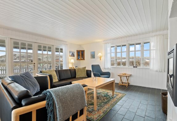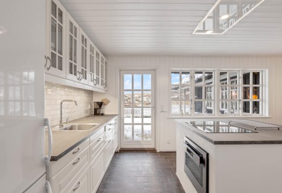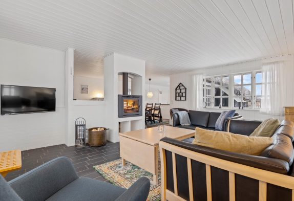 Køkkenalrummet byder på et funktionelt køkken med køkken-ø og med alt det nødvendige til at lave et lækkert måltid. Her kan i lave forskellige aktiviteter både sammen og hver for sig. Sæt dig foran tv-et og se en god film, eller læs en spændende bog foran den knitrende brændeovn.