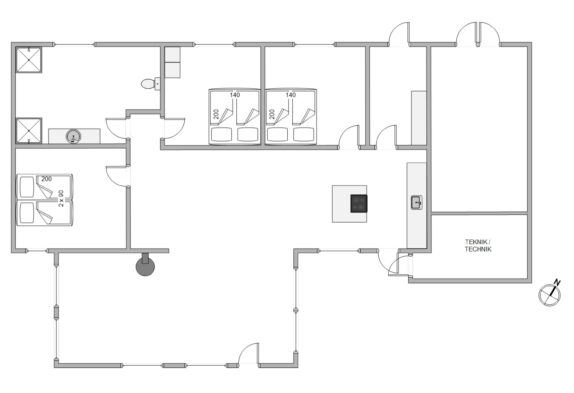 I sommerhuset finder i et stort og lækkert badeværelse med en stor brusekabine og gulvvarme. Derudover er der 3 lyse og komfortable soveværelser i huset, hvoraf alle værelserne har dobbeltseng, så i kan nyde en god nats søvn.