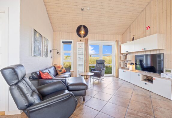 Et velholdt feriehus i Skodbjerge med skøn udsigt over klitlandskab. Der er en dejlig og stor terrasse med god afskærmning, som også er delvist overdækket. Huset er velindrettet og er smagfuldt møbleret. Huset har en unik beliggenhed og området er fantastisk.