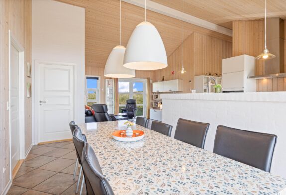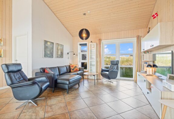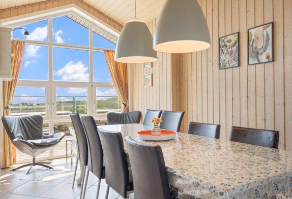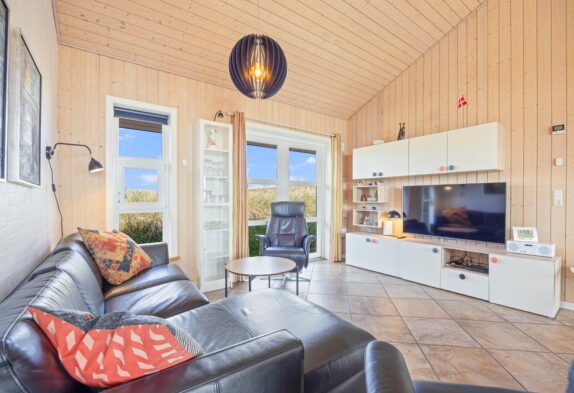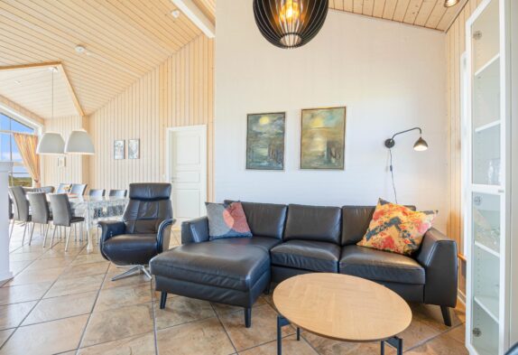 Et feriehus i en god kvalitet både udenfor og indenfor. Huset har praktiske klinkegulve med gulvvarme i køkken og stue, der er loft til kip i stuen, som giver et skønt lys i huset. De store vinduespartier betyder at den gode udsigt udnyttes bedst muligt. Huset er veludstyret og indeholder mange af de moderne faciliteter man forventer. Særligt og spændende er specielt det store badeværelse, hvor vaskearrangementet kan benyttes fra begge sider.