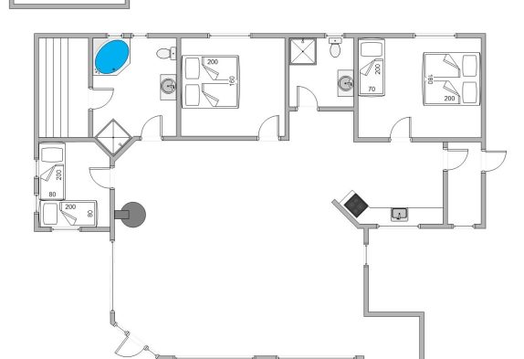 Der er 3 soveværelser i sommerhuset – 2 af dem med fladskærme og DVD-afspiller, hvor I kan tilslutte en medbragt spillekonsol eller se egne film. Badeværelset har både spa og sauna, så I kan slappe af efter en dag i den friske luft.