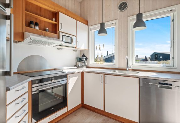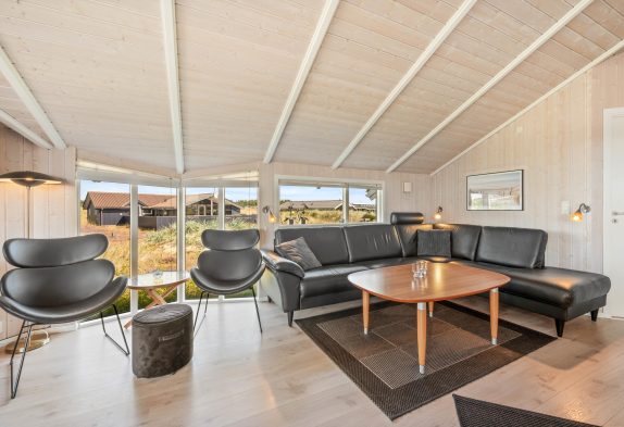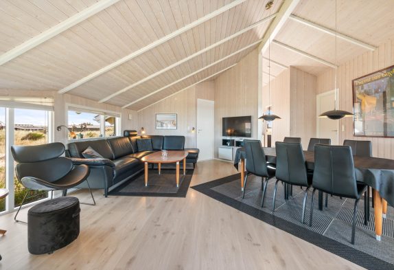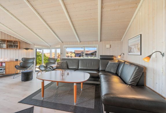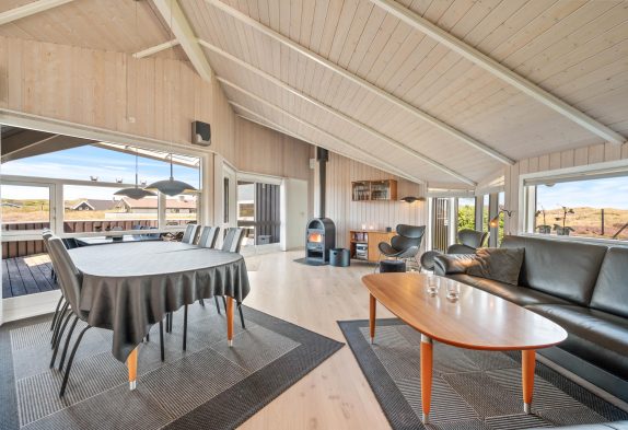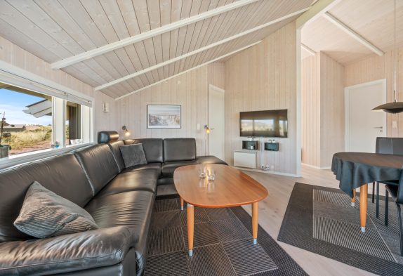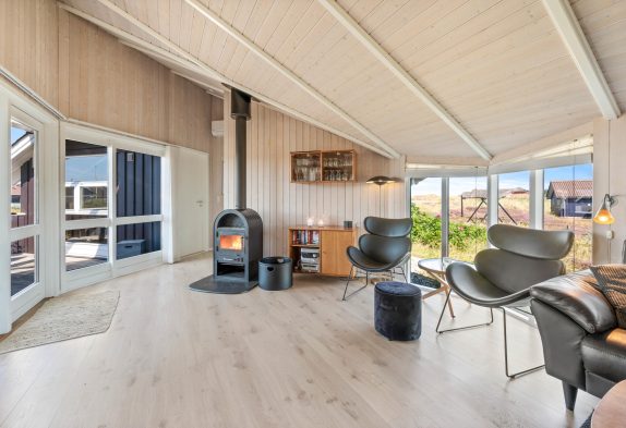 Leder du efter et rummeligt sommerhus, hvor hele familien med hund kan nyde deres ferie i smukke omgivelser? Så er dette sommerhus måske det rigtige for dig. Den store opholdsstue indbyder til socialt samvær foran brændeovnen, se en film sammen på sofaen eller måske er det tid til at spille et spil sammen ved det store spisebord igen? I efteråret og vinteren har du mulighed for at varme sommerhuset op med brændeovnen eller med varmepumpen.