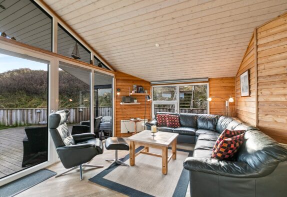 Velkommen til det skønne og charmerende træsommerhus til 8 personer og 1 hund. Her er der ægte sommerhusstemning. Sommerhuset blev bygget i 2005 og er placeret i det skønne ferieområde Årgab. Huset er beliggende på en kuperet naturgrund kun 100 meter fra Vesterhavet. Her finder i nogle gode terrasser, blandt andet en stor lukket terrasse hvor I kan lade hunden løbe frit rundt. For en ekstra bonus er der både udebruser, sauna og spabad.